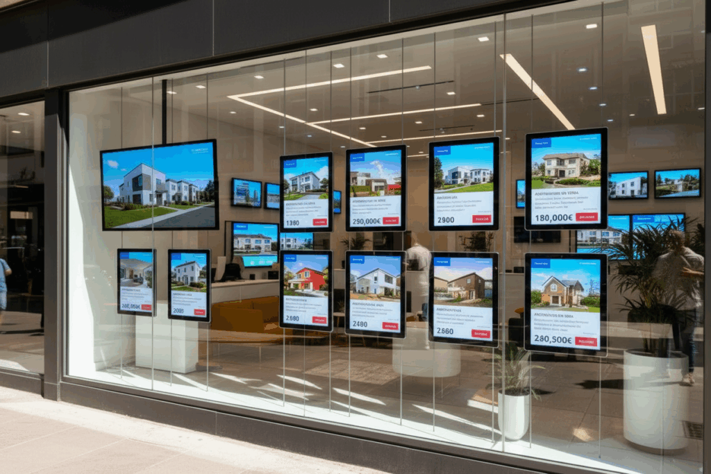 Recubik Inmo es la solución de cartelería digital diseñada específicamente para agencias inmobiliarias. Gestiona lo que aparece en las pantallas de tu escaparate desde el móvil, en segundos — con mensajes que generan impacto, llamadas a la acción que convierten y múltiples formas de captar el contacto del interesado en el momento justo.